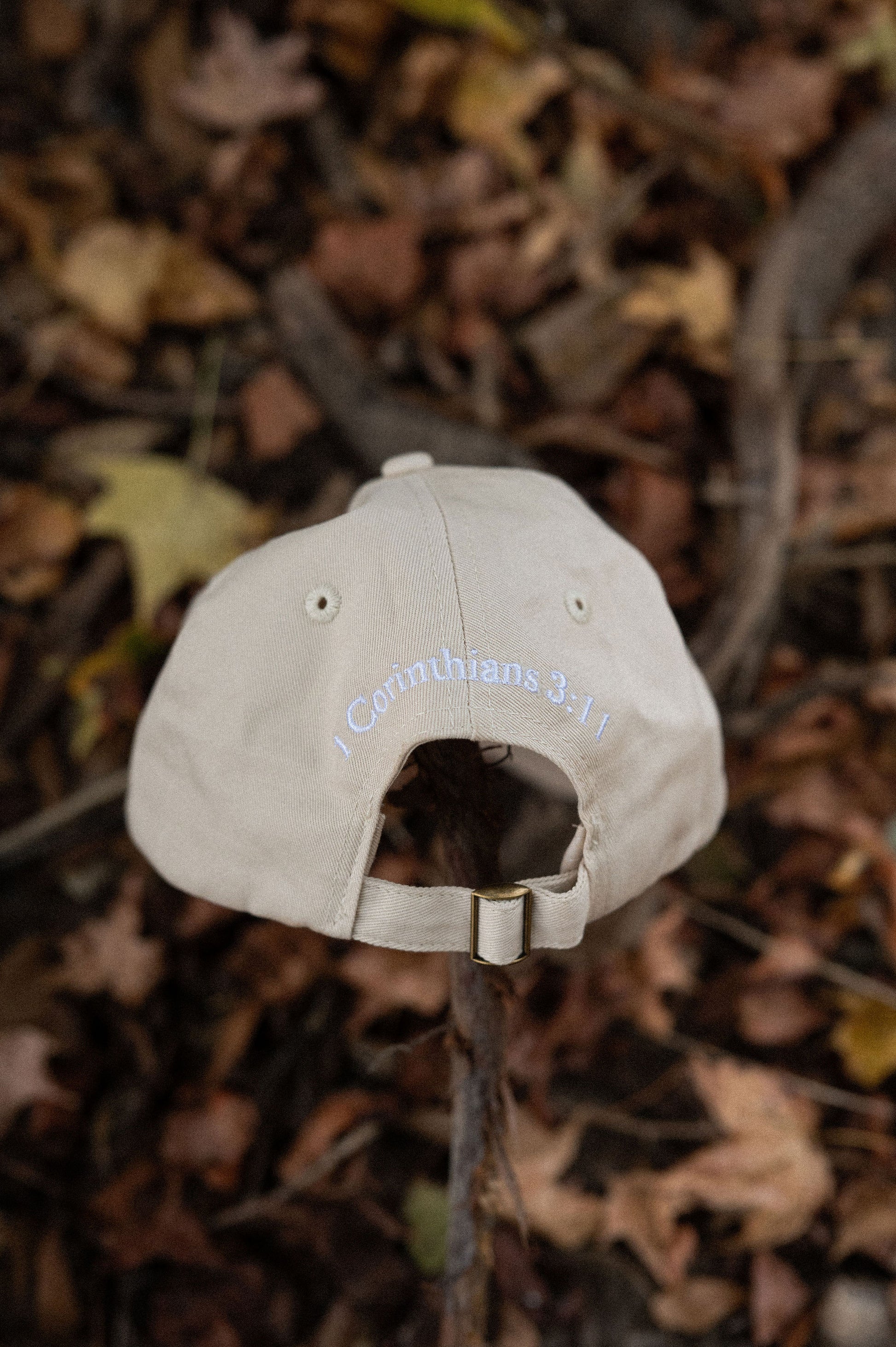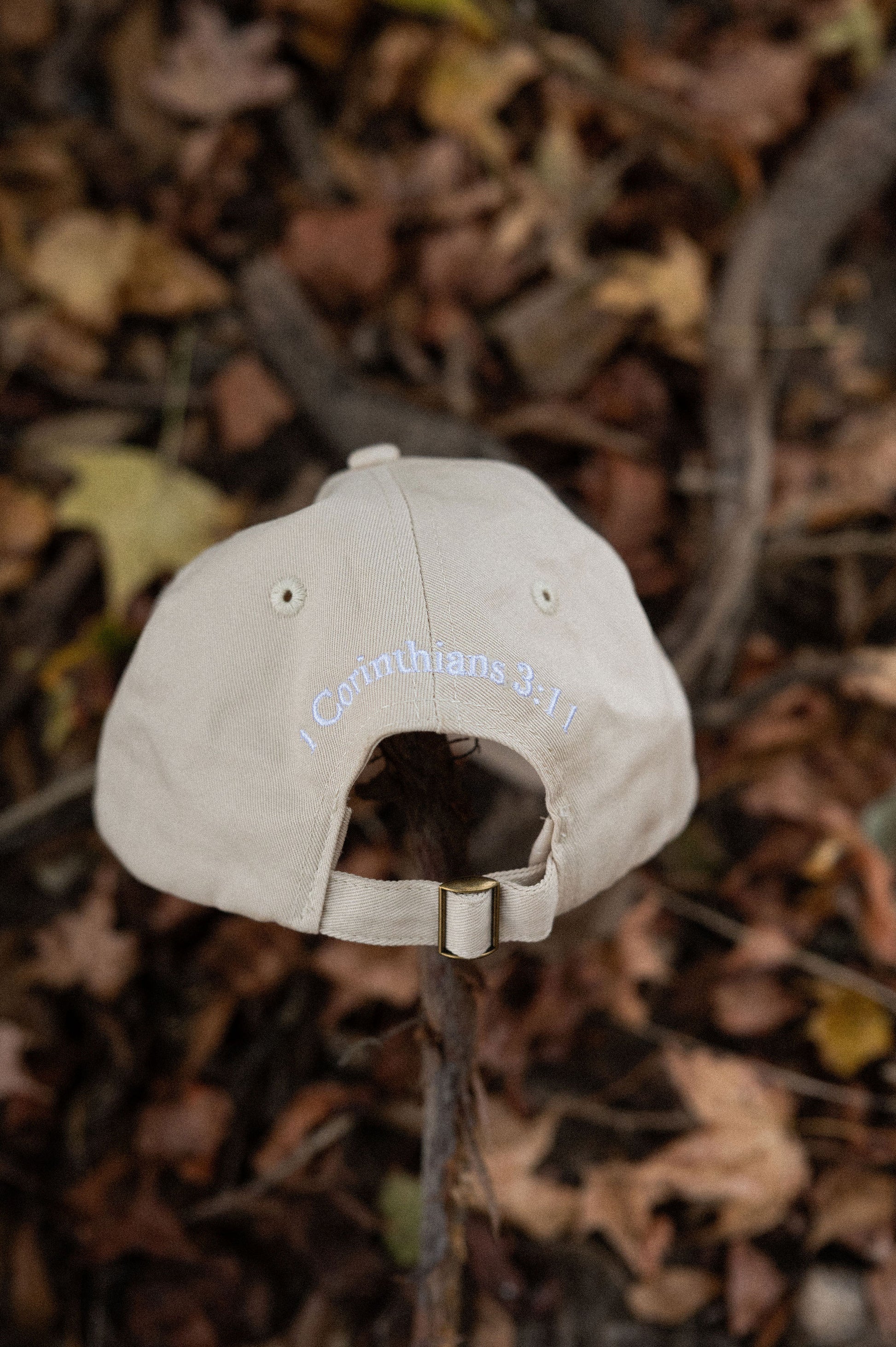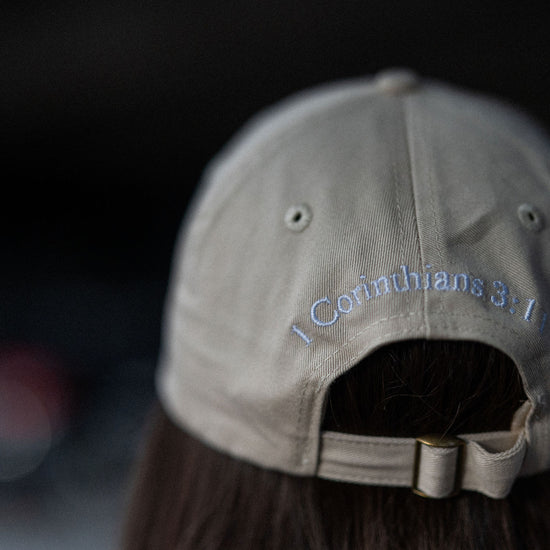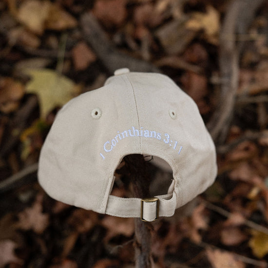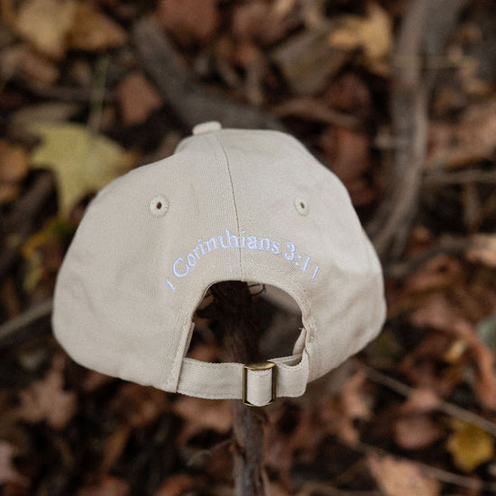 canvas classic baseball cap with verse 1 Corinthians 3:11 on the back