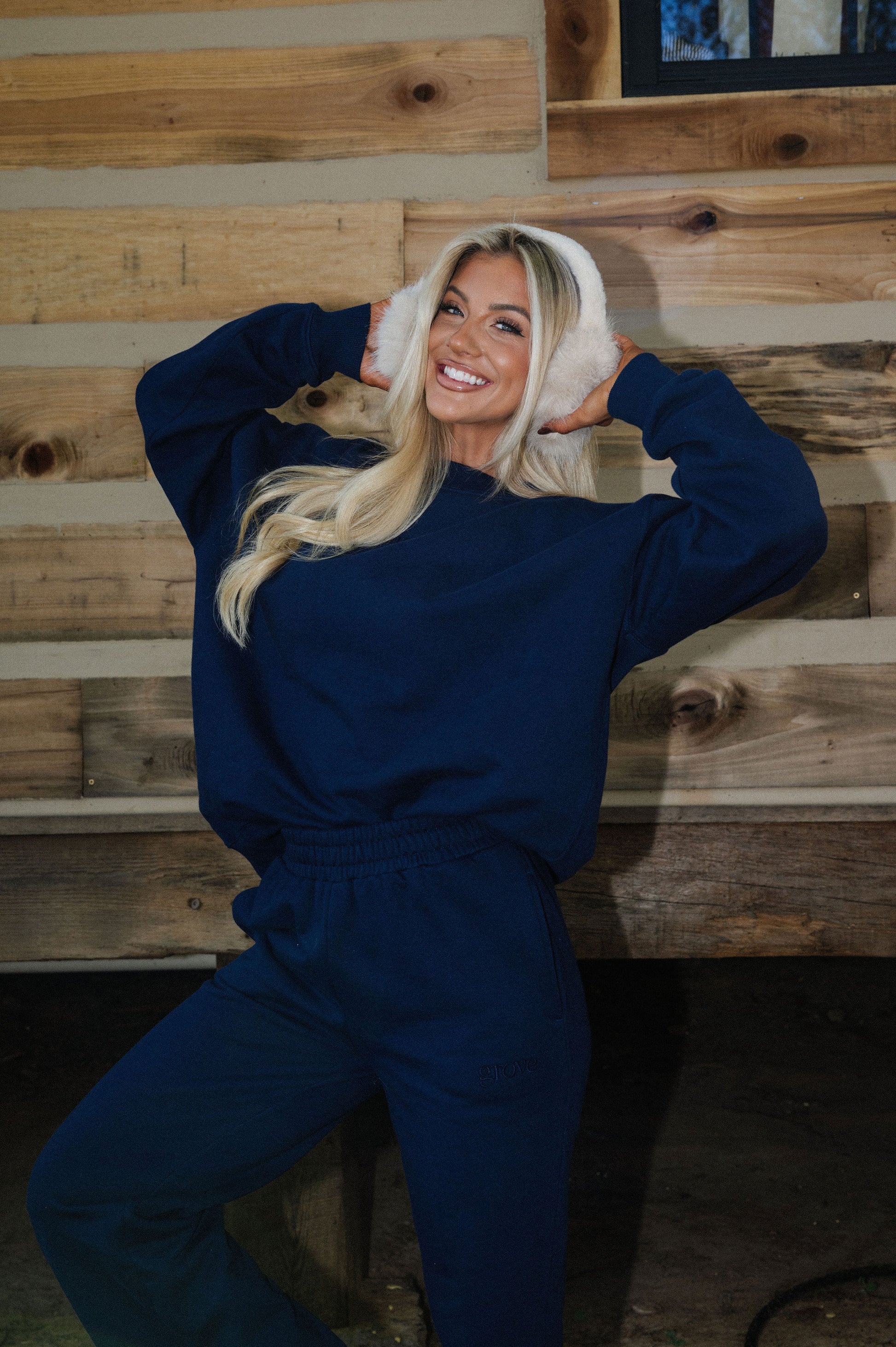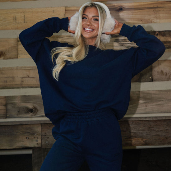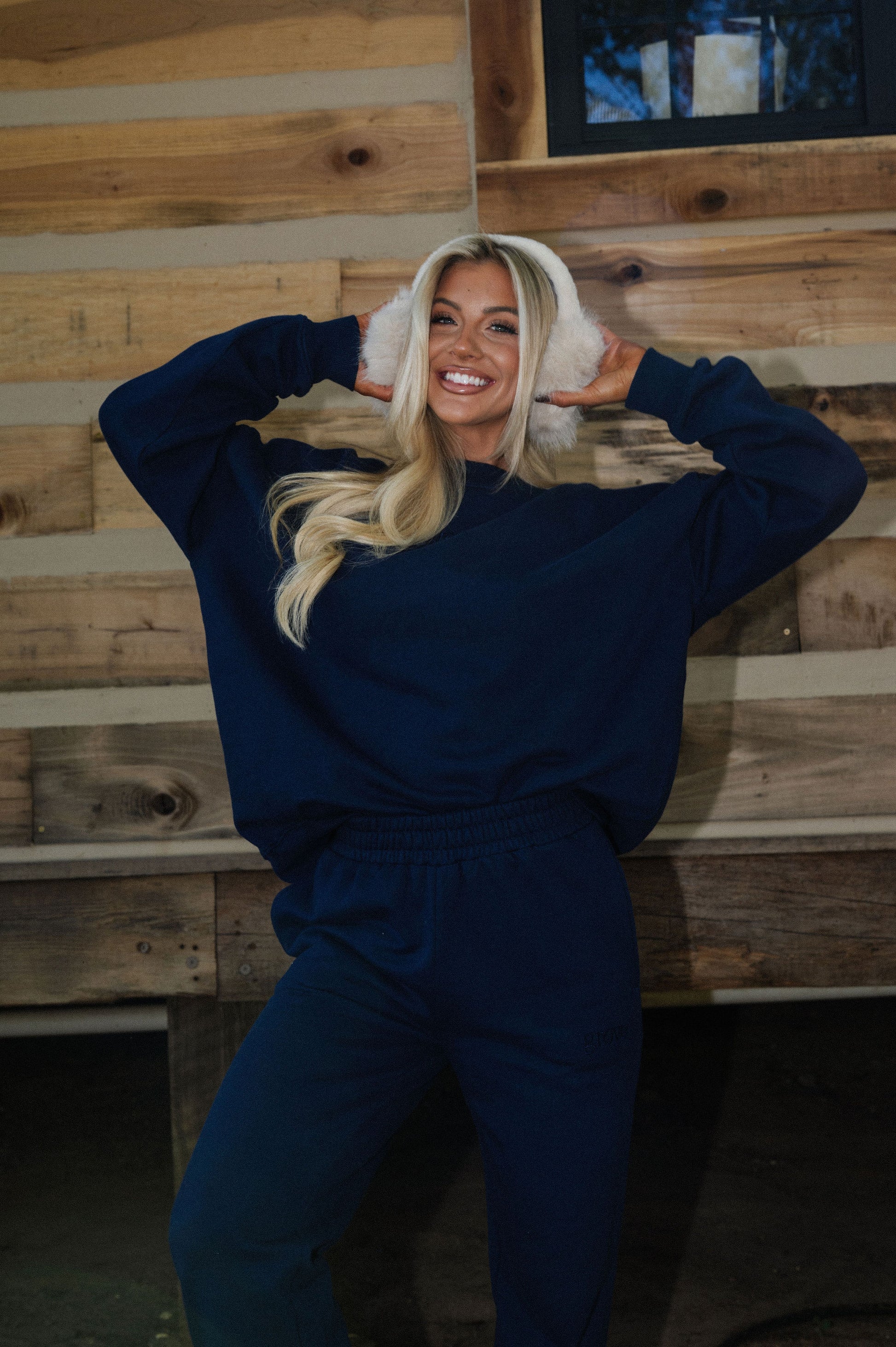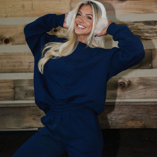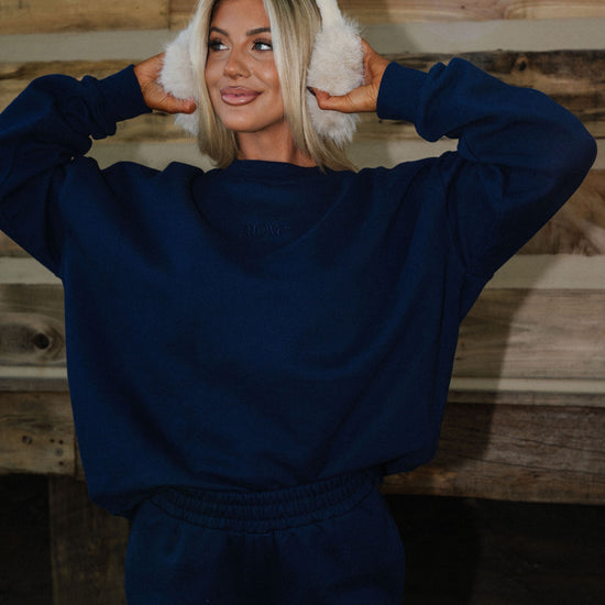 crewneck sweatshirt featuring a tonal embroidered grove on the front