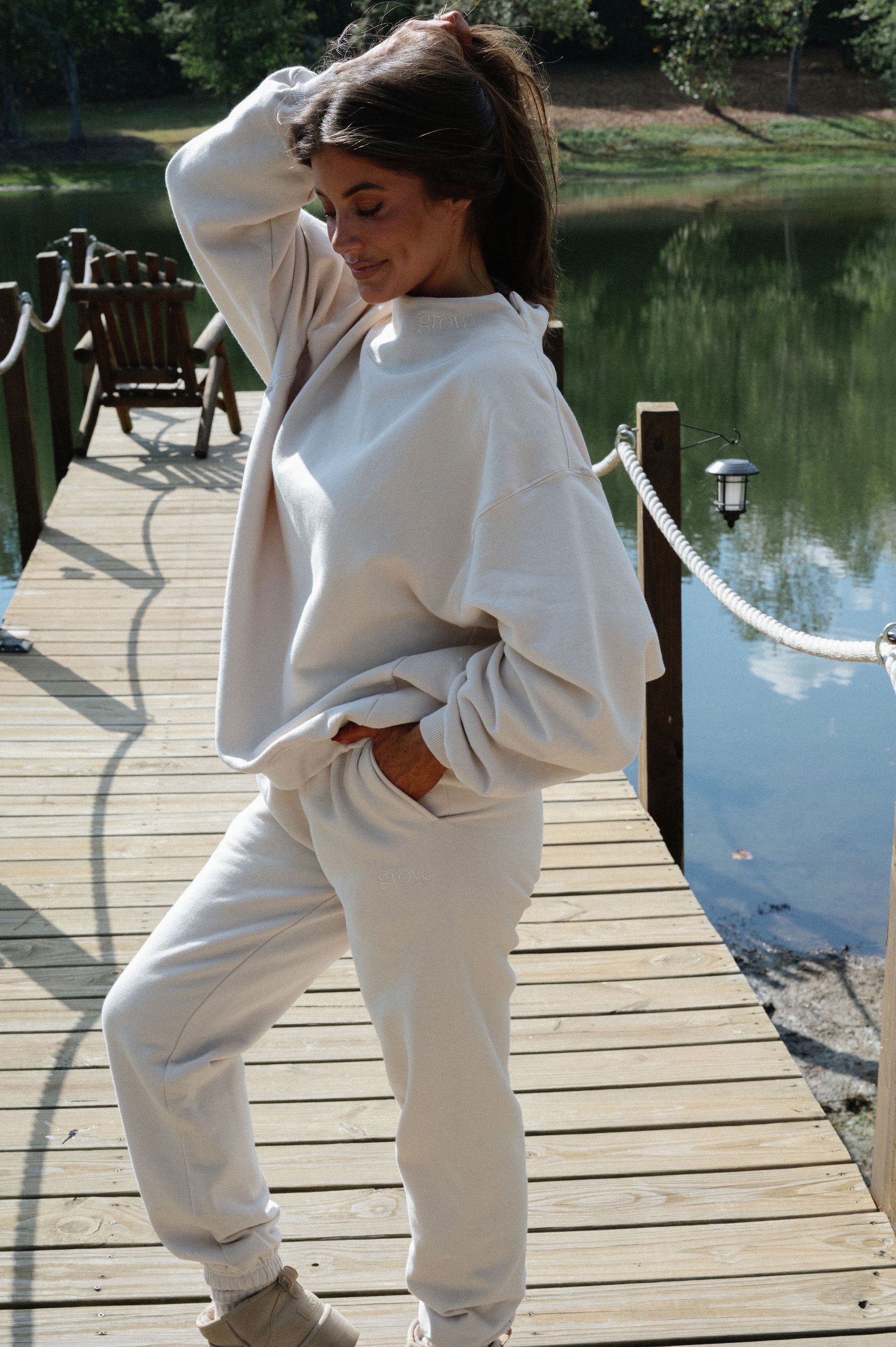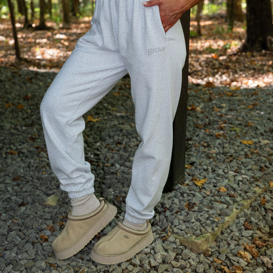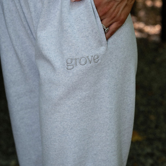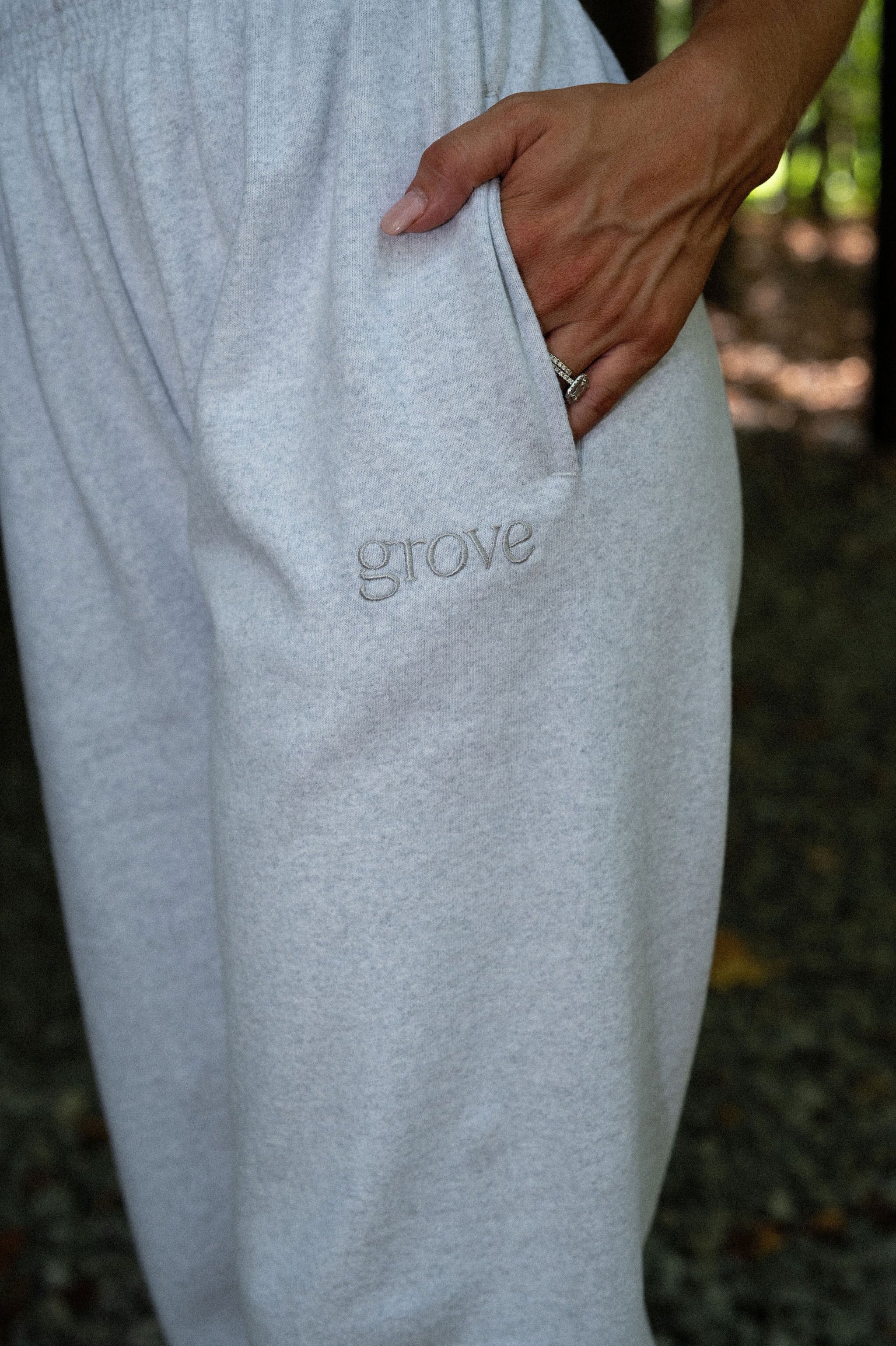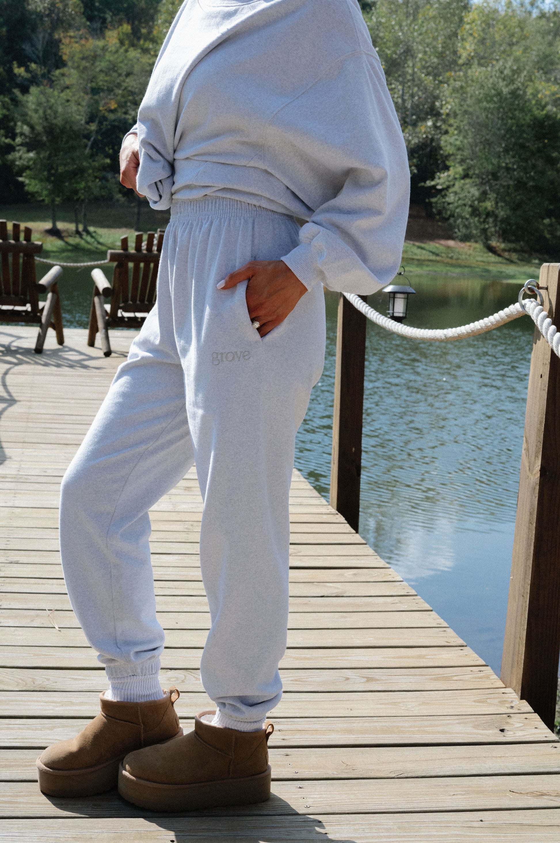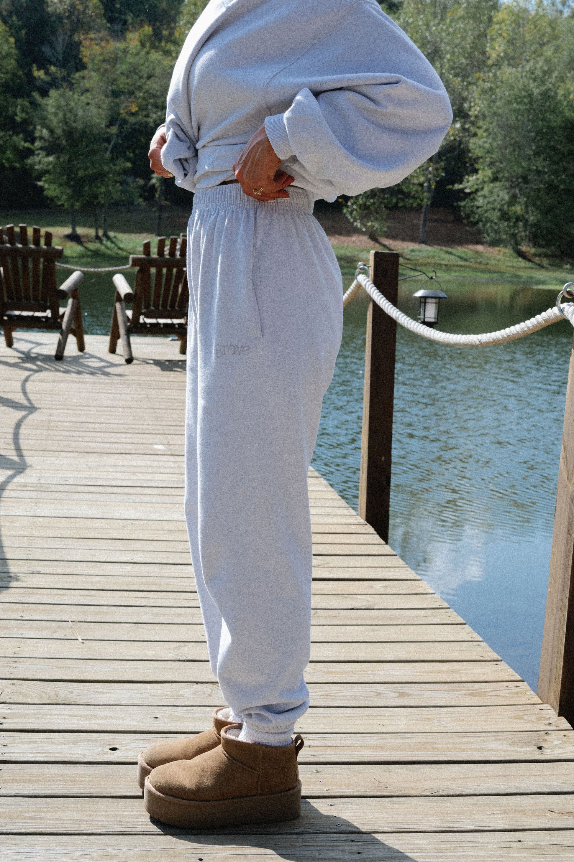 cotton jogger sweatpant, high waisted, side pockets, tonal embroidery below the pocket