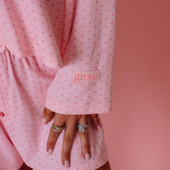 loose button up pajama top in ribbed cotton with a tonal sleeve patch