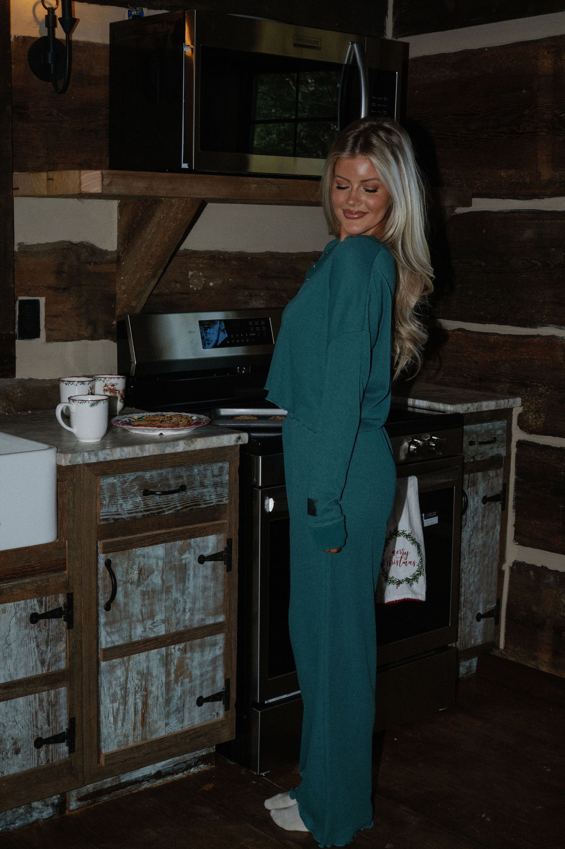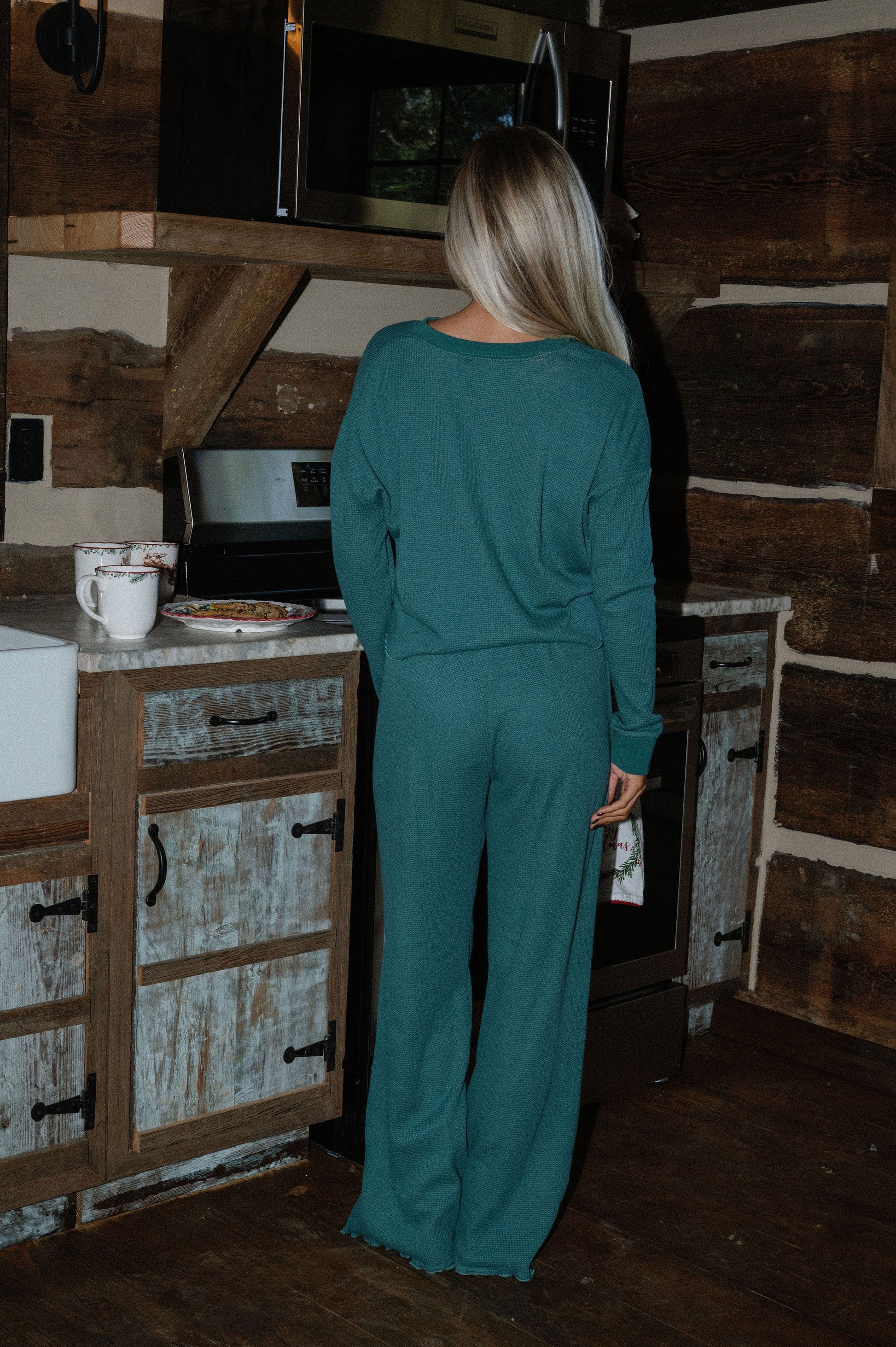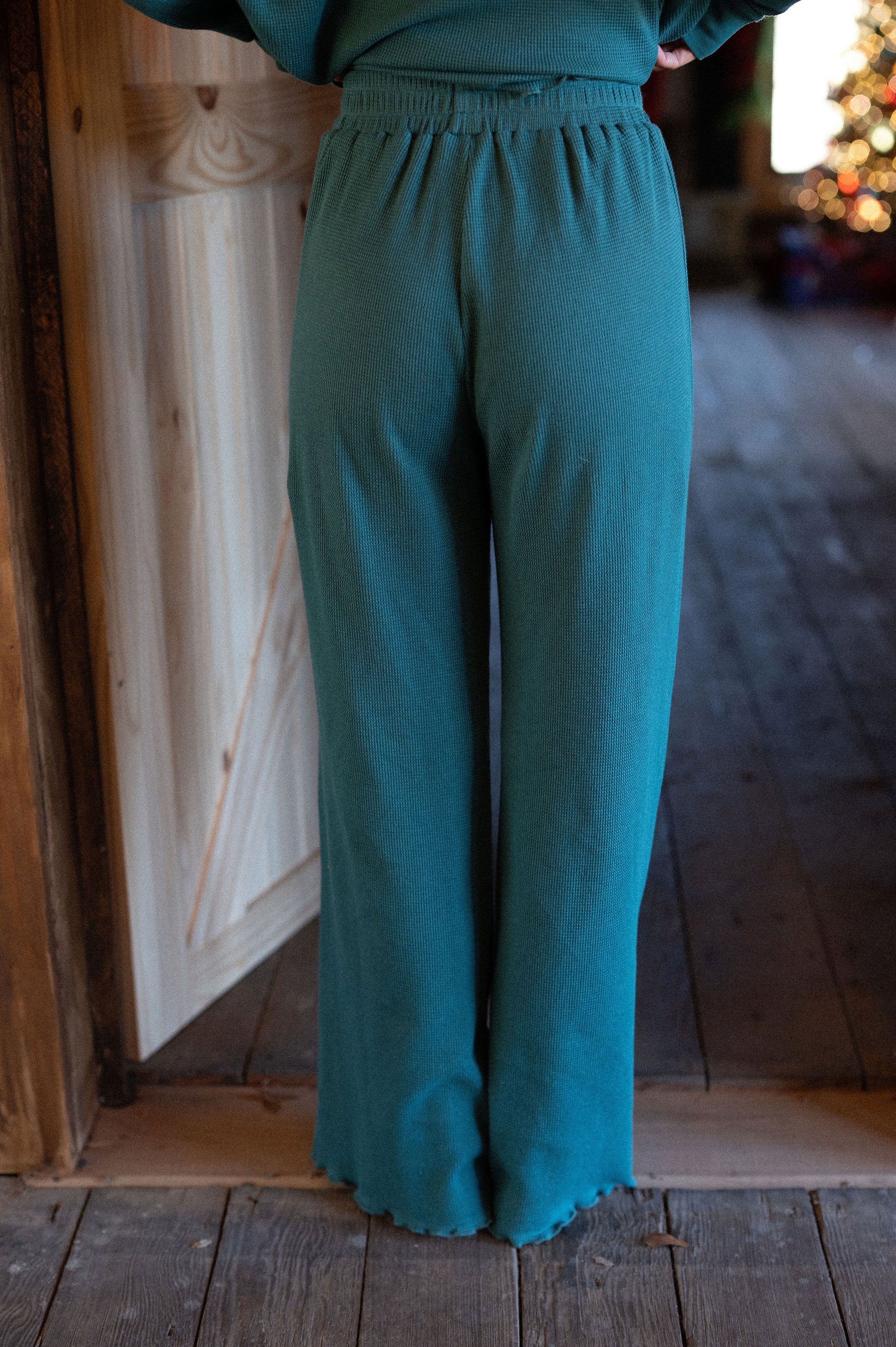 our lightweight waffle pajama pant comes in colorway mistletoe